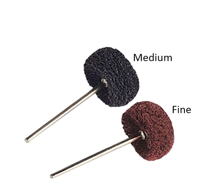 Miniature Satin Finish Buffs. Fine and medium, 1" diameter.